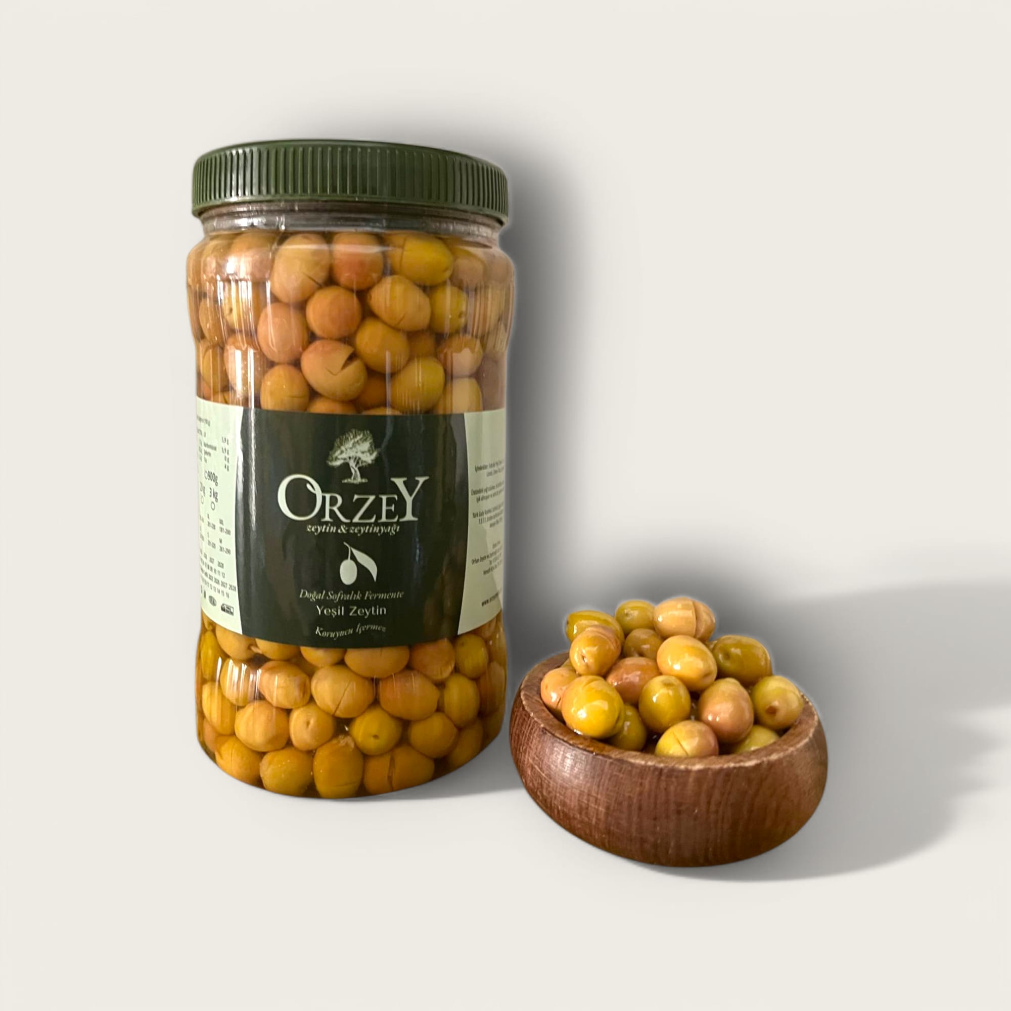 Geleneksel yöntemlerle hazırlanan, %100 doğal fermente kırma zeytinimiz, dalından özenle toplanan yeşil zeytinlerin taşla kırılarak, katkısız salamura suyu ile fermente edilmesiyle hazırlanır. Ne çok tuzlu ne çok ekşi — tam kıvamında ve doğal aromasıyla sofraların vazgeçilmezidir.